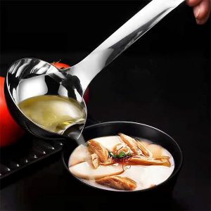 Polievková lyžica z nehrdzavejúcej ocele na oddeľovanie mastnoty